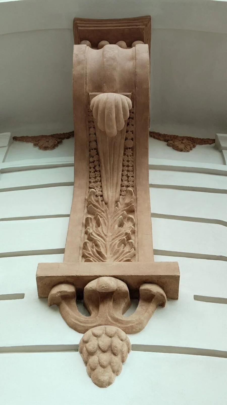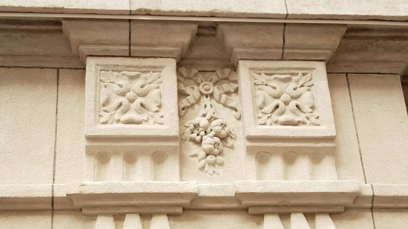 ต้องลอกชั้นสีเก่าออกหลายชั้น พร้อมทำการเก็บตัวอย่างและวิเคราะห์ในห้องปฏิบัติการ เพื่อระบุสีดั้งเดิมที่ถูกต้องตามประวัติศาสตร์ ก่อนนำกลับมาใช้ในการบูรณะ ผลการวิจัยพบสีหลักสองสี ได้แก่ เฉดเบจ สำหรับพื้นผิวหลักของอาคาร เพื่อเลียนแบบหินปูน และ สีน้ำตาลแดง ที่เลียนแบบเทอร์ราคอตตา สำหรับรายละเอียดตกแต่งและลวดลายประดับ ซึ่ง KEIM Paints ได้ผลิตขึ้นใหม่โดยเฉพาะสำหรับโครงการนี้