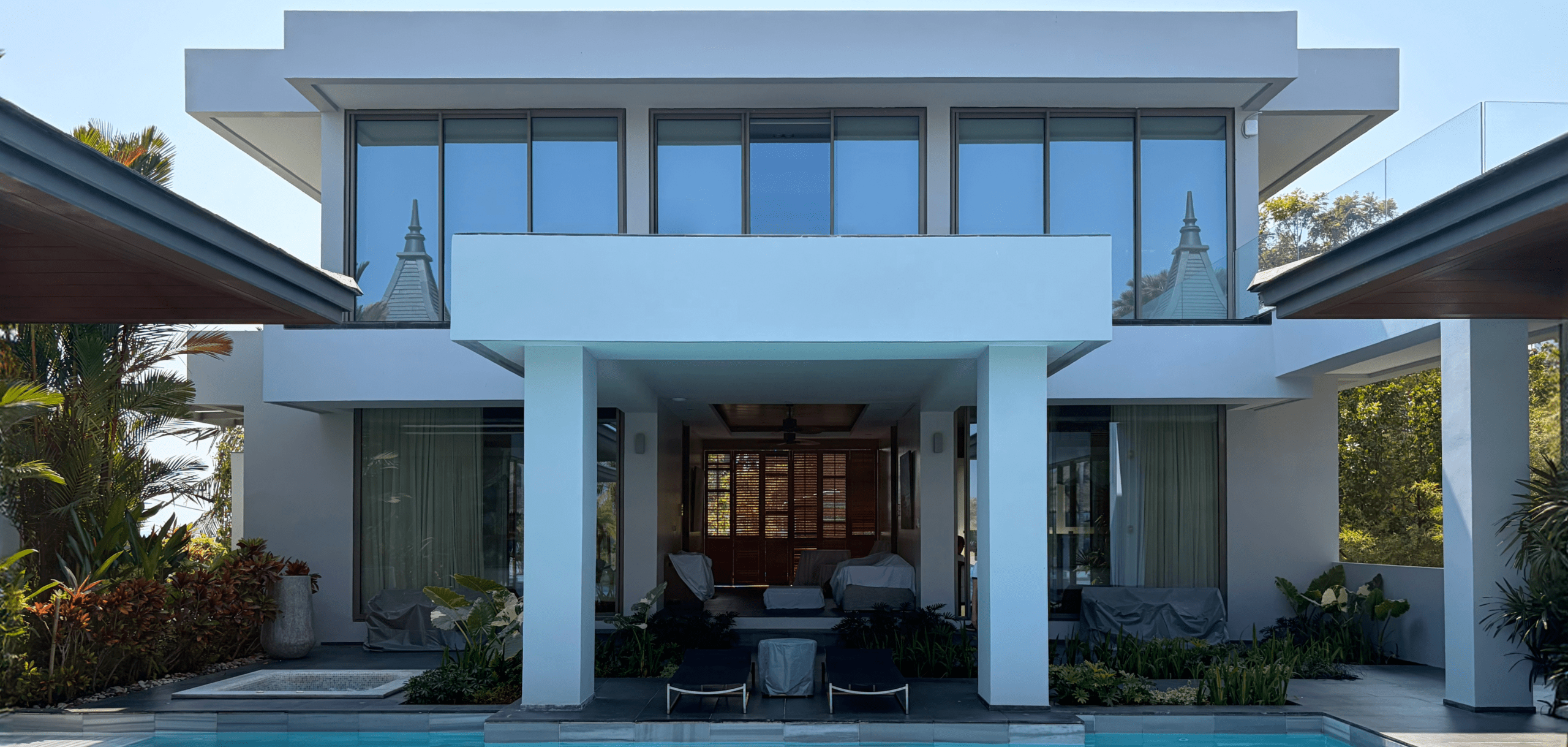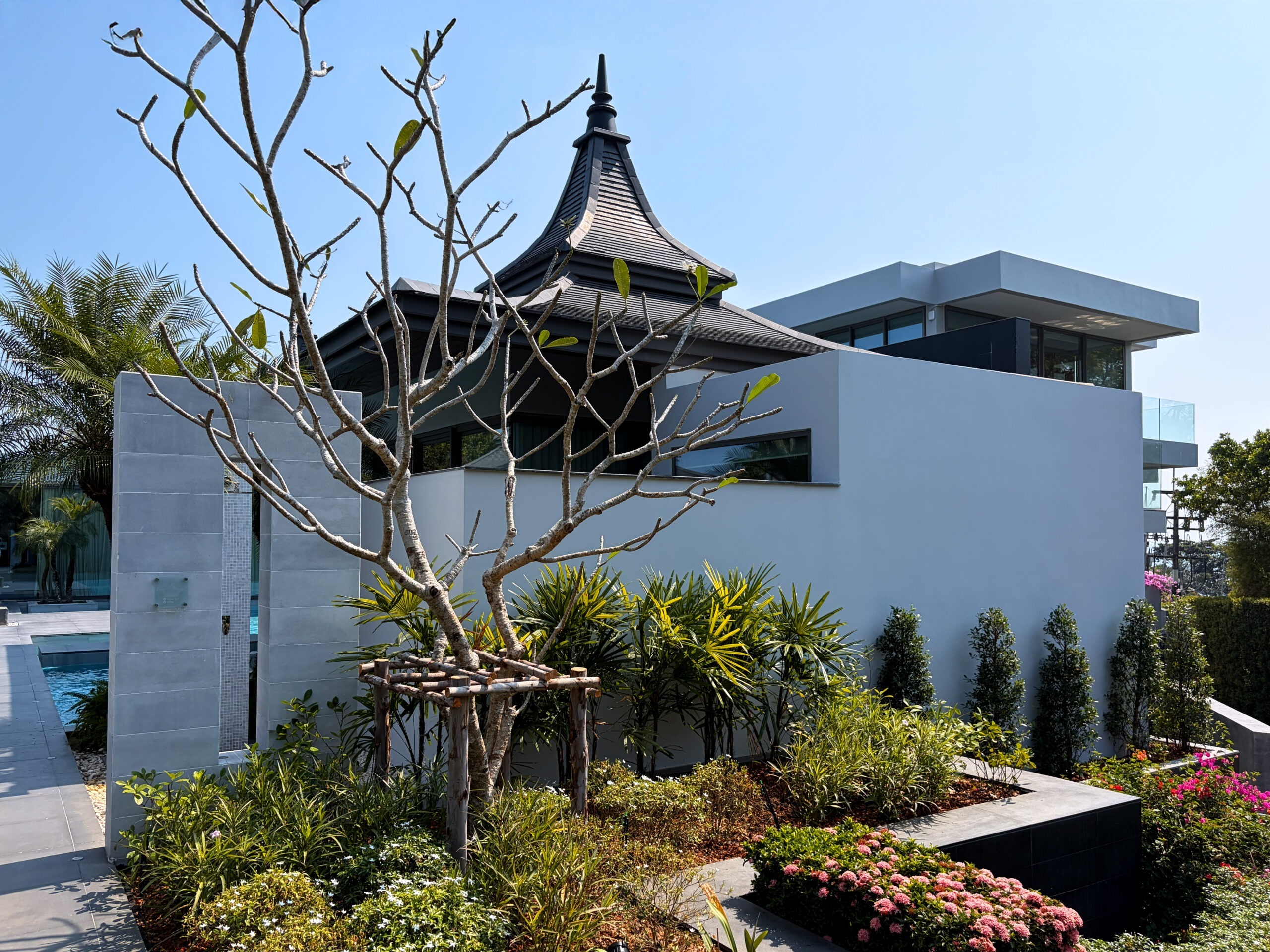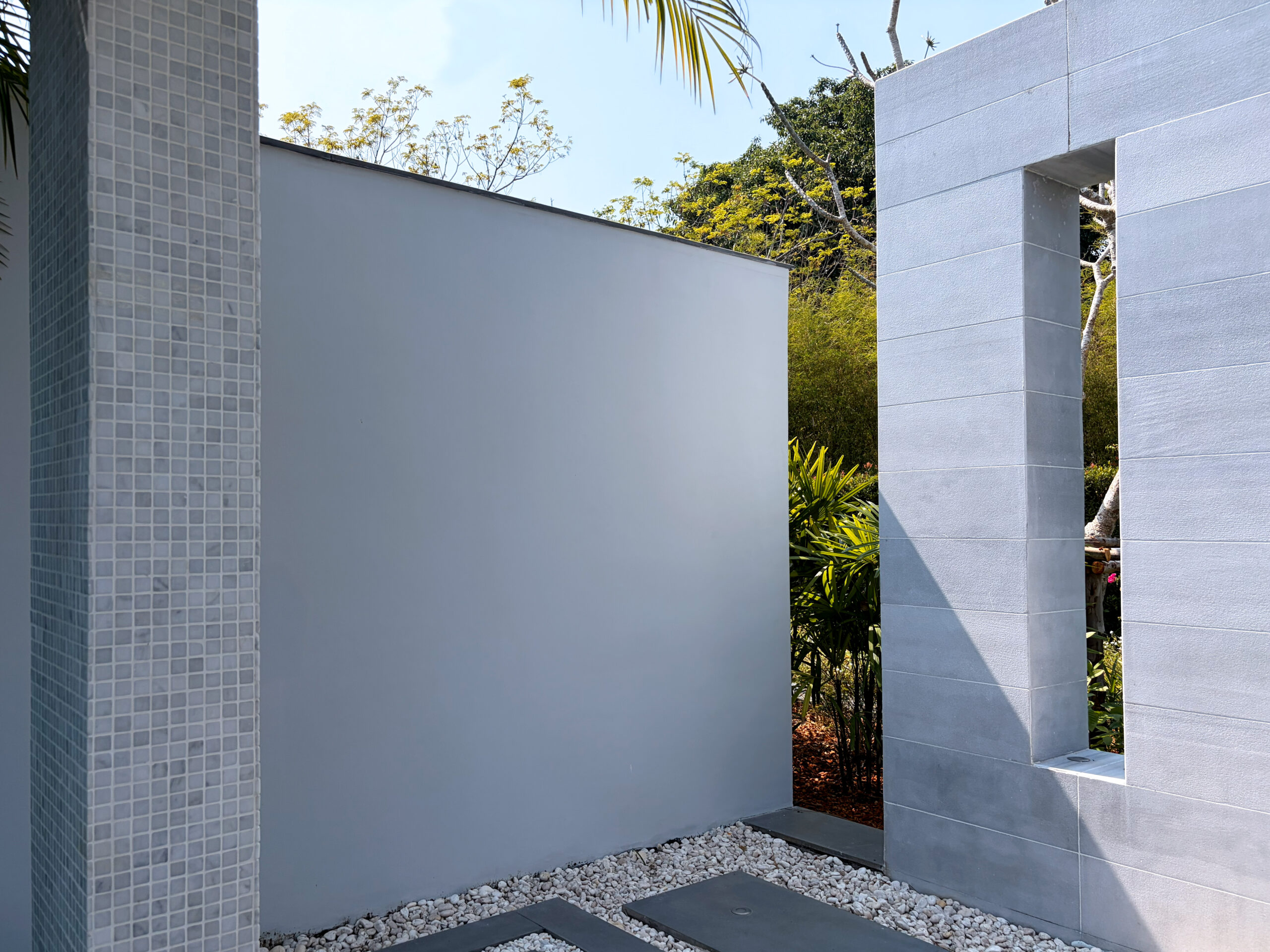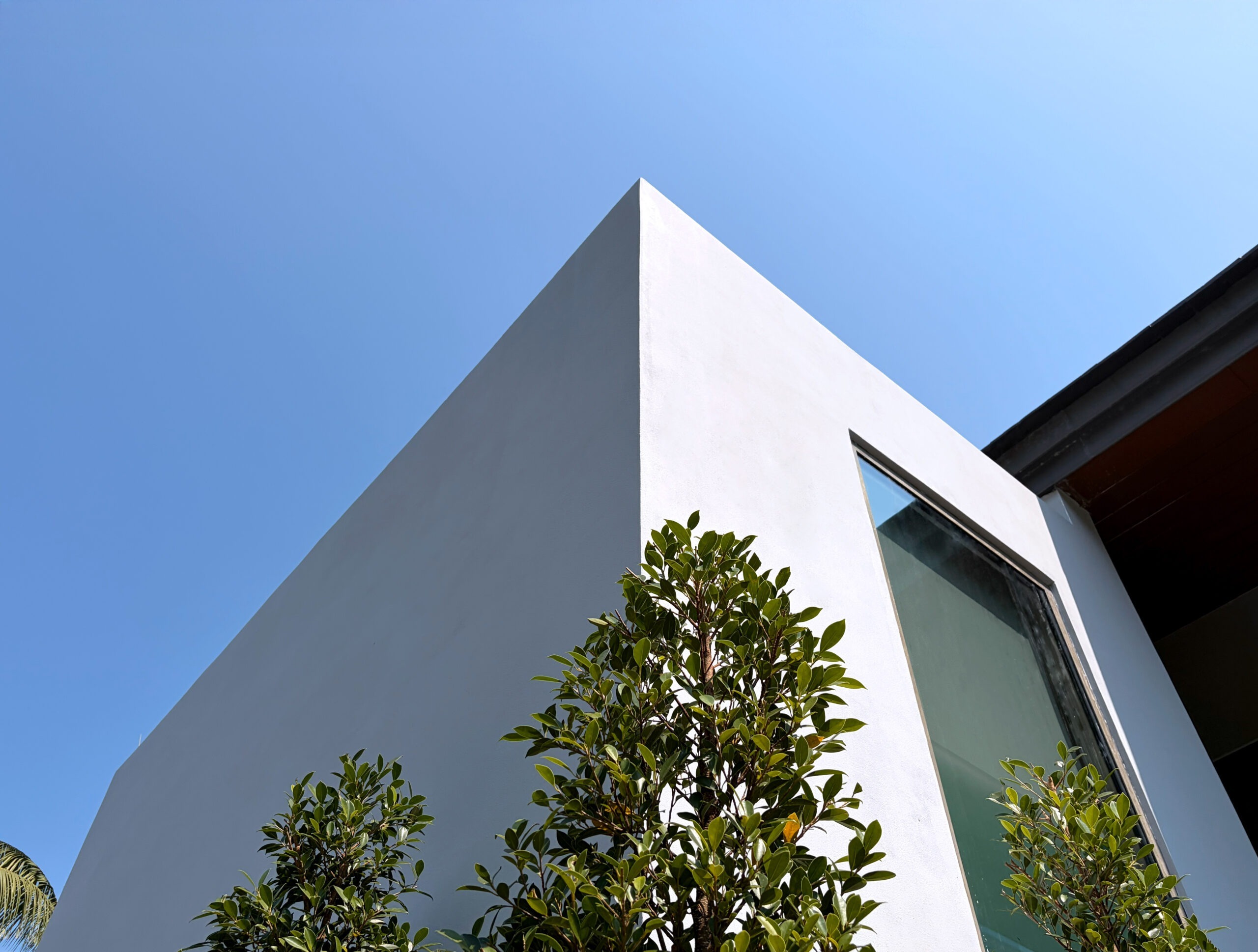 This luxury villa resort spans over 14,000 square meters and is located in the heart of Laem Mae Phim Beach, Rayong Province. The project presented a significant technical challenge due to the high humidity and salt-laden sea air, both of which directly affect the durability and long-term aesthetics of exterior building surfaces.