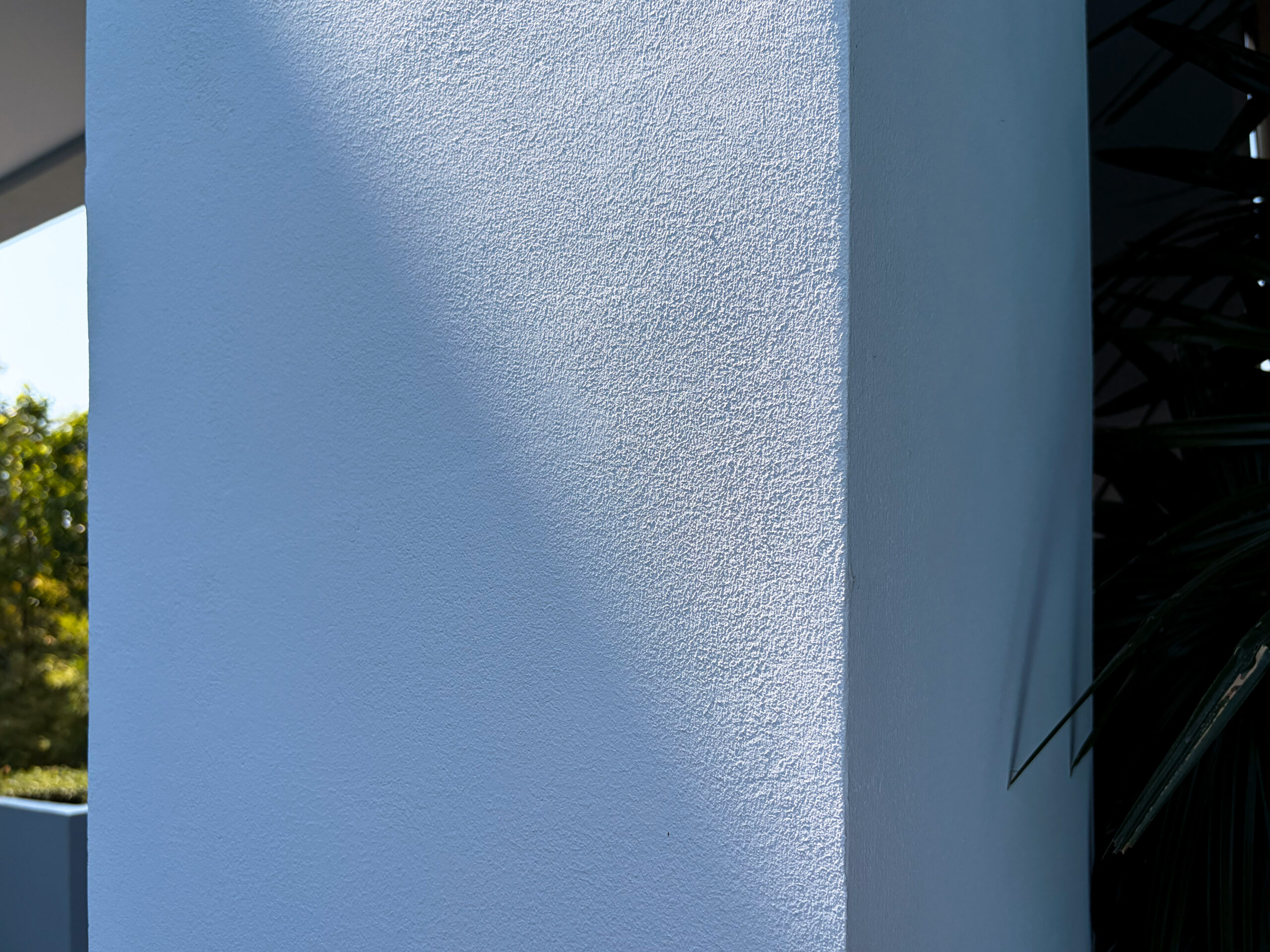 To enhance long-term protection, the surfaces were finished with two coats of KEIM Soldalit, providing superior resistance to salt alkalinity while maintaining natural breathability. This mineral paint system ensures outstanding color stability, long-lasting performance, and a naturally elegant appearance. In addition, it is completely VOC-free and offers the highest level of safety for residents and guests.