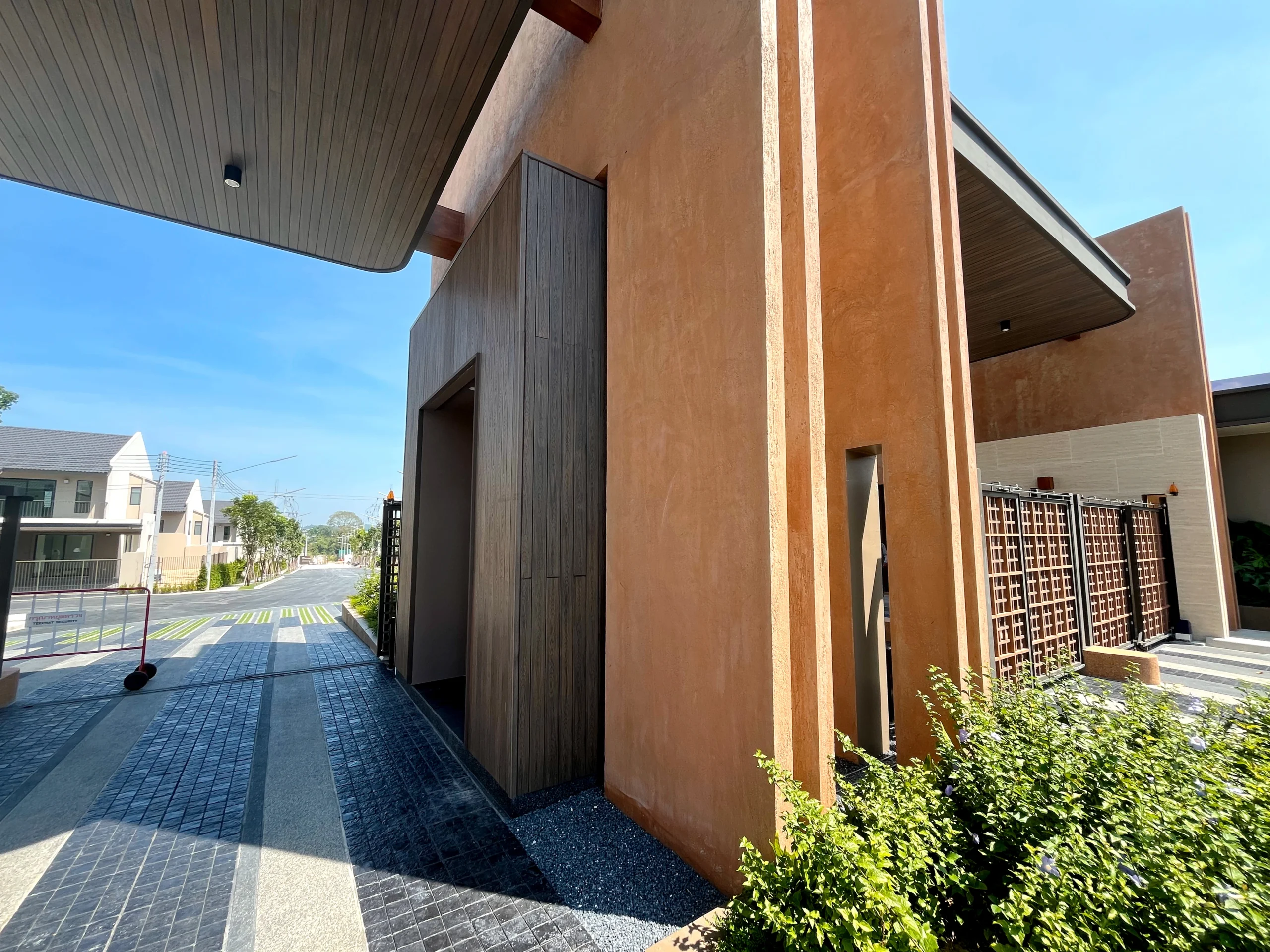 ผลงานออกแบบซุ้มโค้งที่งดงามที่สุดภายใต้แนวคิด ESG สร้างสรรค์โดยหนึ่งในทีมสถาปนิกชั้นนำของประเทศไทย โดยคัดสรรวัสดุที่เป็นมิตรต่อสิ่งแวดล้อมอย่างพิถีพิถันในทุกองค์ประกอบ ไม่ว่าจะเป็นวงกบ ประตู รั้วไม้ วัสดุปิดผิว ไปจนถึงพื้นผิวปูนฉาบที่ได้จากงานฝีมือดั้งเดิม ทำให้เกิดลวดลายผิวที่งดงามและละเอียดอ่อน